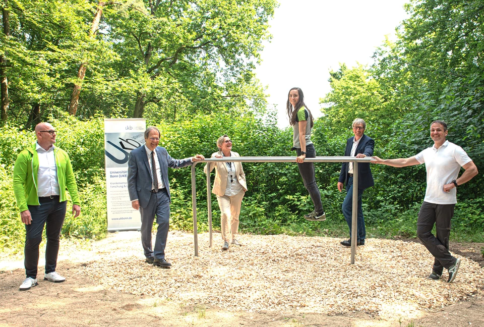 Der erste Fitness-Trail in Nordrhein-Westfalen befindet sich direkt angrenzend an das Universitätsklinikum Bonn im Stadtwald auf dem Venusberg. Die Gesamtlänge der Strecke ist 1.900 m und führt entlang der Mauer des UKB. Der Startpunkt des Fitness-Trails befindet sich auf dem Waldweg an der östlichen Seite des UKB-Geländes, auf Höhe des Gebäudes 1. Die Laufstrecke liegt auf einem breiten Waldweg. Die Stationen sind so verteilt, dass auf dem Hinweg eine von drei Stationen liegt. Nach 950 m nach dem Start gelangt man zum Wendepunkt und der zweiten Station und absolviert die Station 3 auf dem Rückweg zum Startpunkt.